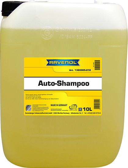 RAVENOL Auto-Shampoo не оказывает вредного воздействия на масляный сепаратор. Состав: Анионные и неионогенные тенсиды (ПАВ); UBA-Nr.: 0703008 Применение: Развести 1-2 колпачка шампуня RAVENOL Auto-Shampoo на 10 литров воды. Используется для контактной, ручной мойки.