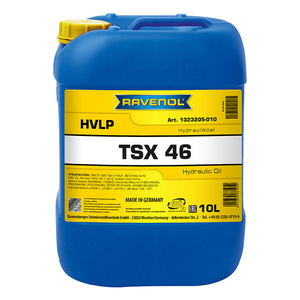 RAVENOL Hydraulikoel TSX 46 (HVLP) – минеральное гидравлическое масло класса HVLP. Благодаря применению высокоочищенного базового масла и специального комплекса присадок обеспечиваются стабильный индекс вязкости и надежная защита от коррозии и износа, а также нейтральное отношение к уплотнительным материалам.