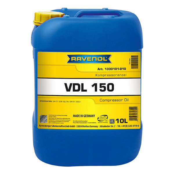 RAVENOL Kompressorenoel VDL 150 – компрессорное масло, изготовленное в Германии из высококачественных смесей парафиновых минеральных масел с хорошо сбалансированным комплексом беззольных присадок, обеспечивающих стойкость к окислению, защиту от коррозии, и высокоэффективные противозадирные характеристики.
