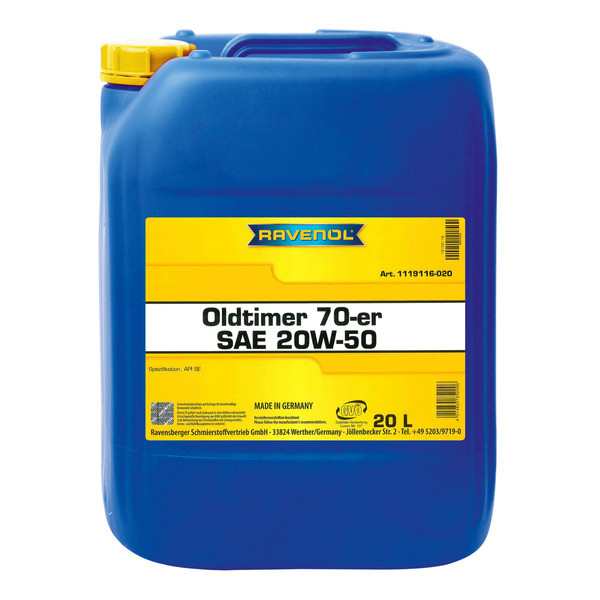 RAVENOL Oldtimer 70-er 20W-50 API SE - минеральное моноградное моторное масло для классических (ретро-автомобилей) до 1979. Изготовлено на основе высокоочищенного минерального базового масла с добавлением необходимого по рецептуре пакета присадок.