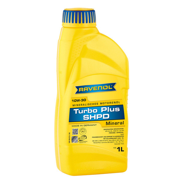 RAVENOL Turbo plus SHPD 10W-30 – моторное масло класса SHPD для смешанного автопарка. Предназначено для использования дизельных и бензиновых двигателей также с турбонаддувом. Гарантирует удлиненный интервал замены (согласно инструкции автопроизводителя).