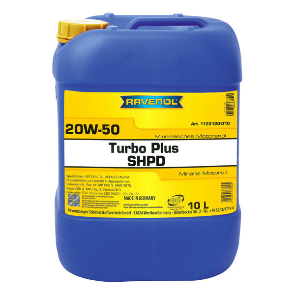 Моторное масло RAVENOL Turbo-Plus SHPD 20W-50 изготовлено в Германии на основе высококачественного базового минерального масла c добавлением гидрокрекингового базового масла и специально разработанного пакета присадок.