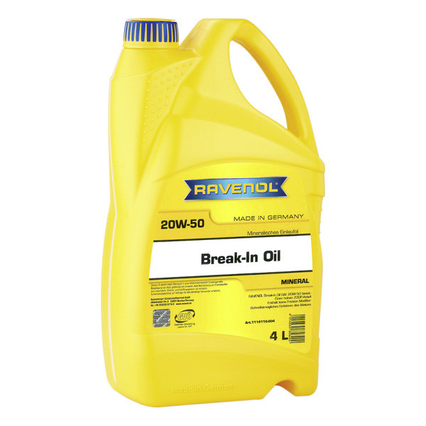 RAVENOL Break-In Oil SAE 20W-50 минеральное масло для обкатки двигателей - новых, после спортивного тюнинга, капитального ремонта с содержанием комплекса присадок, обеспечивающего устойчивость к высокому давлению.