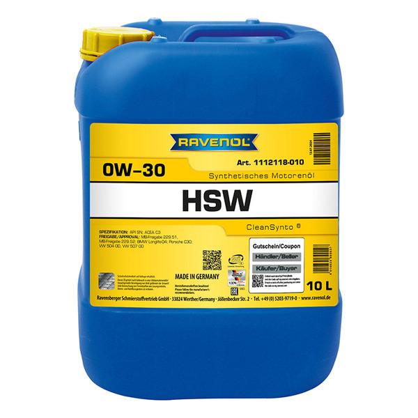 RAVENOL HSW SAE 0W-30 может использоваться во всех автомобилях с системой LongLife Service и без неё. Подходит для удлиненных интервалов замены масла в автомобилях с сажевыми фильтрами DPF и без них.