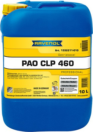 RAVENOL Getriebeoel CLP PАО 460 - это полностью синтетическое трансмиссионное масло, изготовленное в Германии на основе полиальфаолефинового базового масла высшего качества.